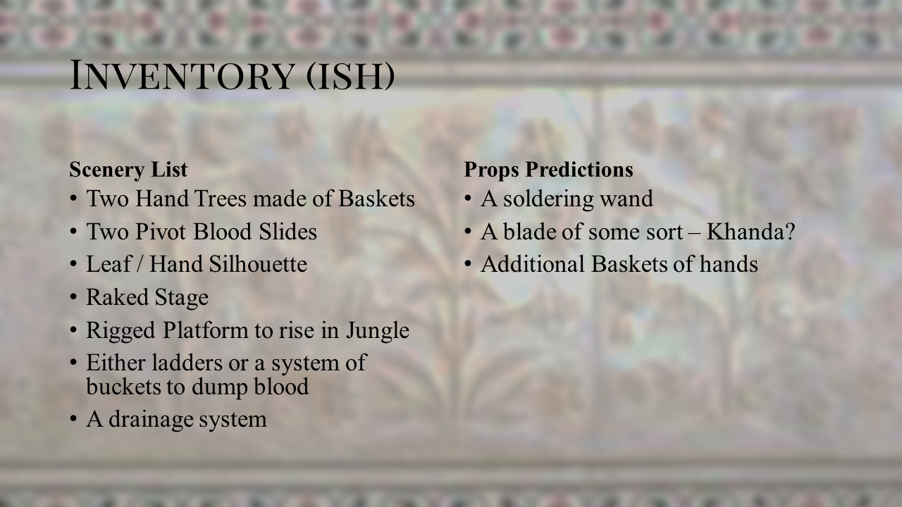 Guards of the TaJ: Theoretical Scene Design Project Date: Fall 2023 Class: Advanced Scenic Design Professor: Randy McMullen Slide 1 Slide 1 (current slide) Slide 2 Slide 2 (current slide) Slide 3 Slide 3 (current slide) Slide 4 Slide 4 (current slide) Slide 5 Slide 5 (current slide) Slide 6 Slide 6 (current slide) Slide 7 Slide 7 (current slide) Slide 8 Slide 8 (current slide) Slide 9 Slide 9 (current slide) Slide 10 Slide 10 (current slide) Slide 11 Slide 11 (current slide)